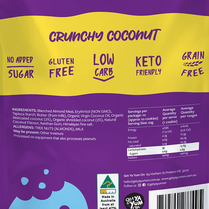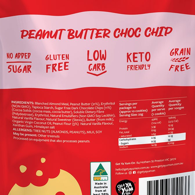 Sink your teeth into this yummy selection of low-calorie treats! Get Ya Yum On has created four (4) delicious flavours of cookies, including Chocolate Brownie, Crunchy Coconut, Peanut Butter Choc Chip and Salted Caramel Choc Chip โ there is a flavour for every craving!