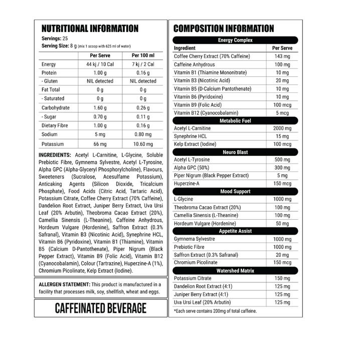 Mix one (1) scoop with 625ml of chilled water. Consume 15-20 minutes before exercise.