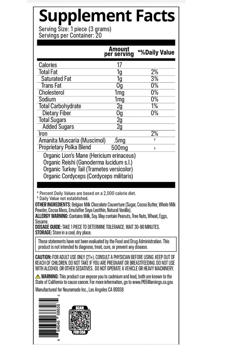 • 0.5 mg muscimol Isolate (Amanita Muscaria). Contains 0% Ibotenic Acid.