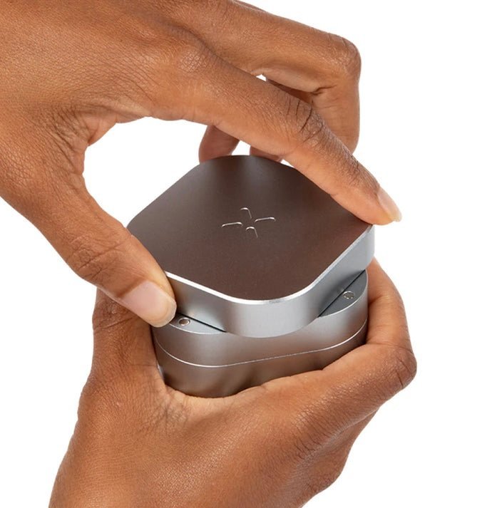 Pax 3-piece grinder is custom-made from heavy-duty aluminum and complete with a thread-less magnetic closure. It has a unique ergonomic shape that’s easy to grip, and produces an even, medium grind that perfect for your joint, bowl, or PAX.