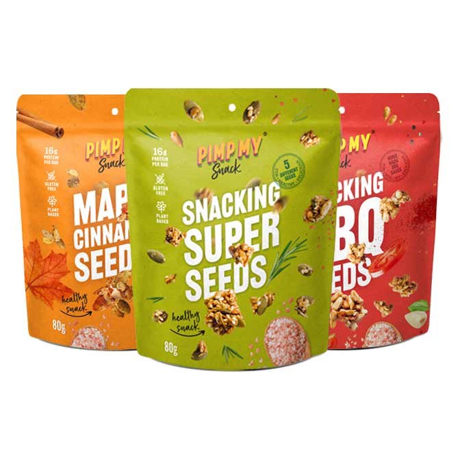 Indulge in the perfect healthy treat with the all-natural Pimp My Snack Snacking Seeds.