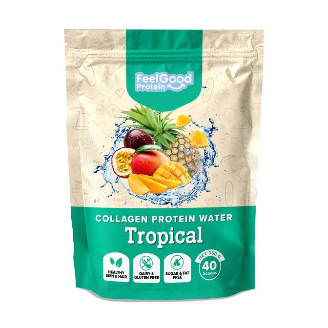Protein Water is a flavoured water-based, clear, beverage made from collagen protein, that can aid in increasing your daily protein and water intake. Nutritionally, Feel Good Protein Water delivers 15g of high-quality collagen protein per serving.