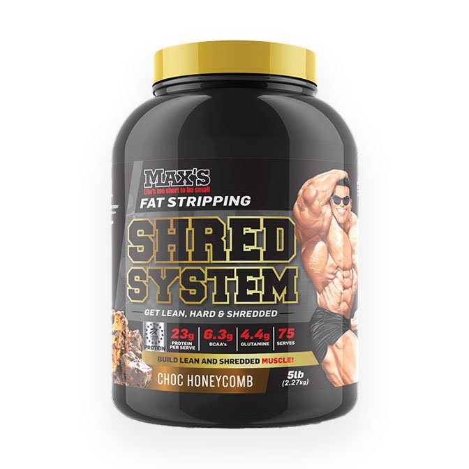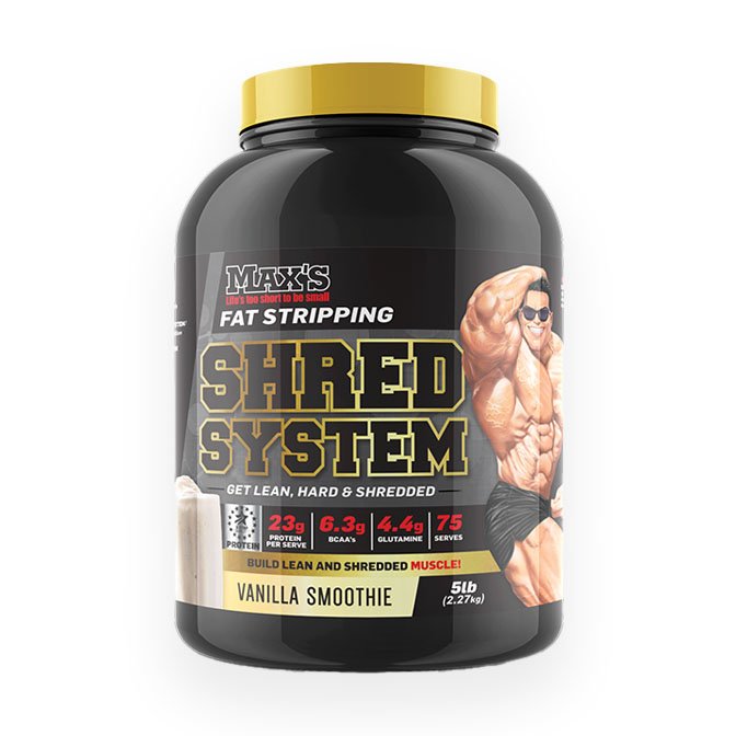 Max’s Shred System is a protein powder designed for those who want to loose some body fat as well as get ripped! It does this in two steps. First, using a sequence of carb blockers and fat burners, Shred System helps burn up fat and prevent its build up as well. Next, Shred System also provides a quality anabolic protein blend – an essential nutrient promoting muscle growth, which the body naturally burns through over time with its calorie needs. This awesome formula will help you build lean shredded muscle and burn fat! It’s packed with the latest in lean nutrition science, like the unique lean protein blend, fat incinerating complex, and nitrogen retention technology.