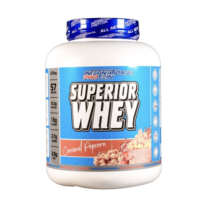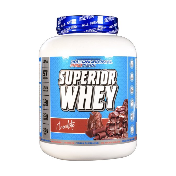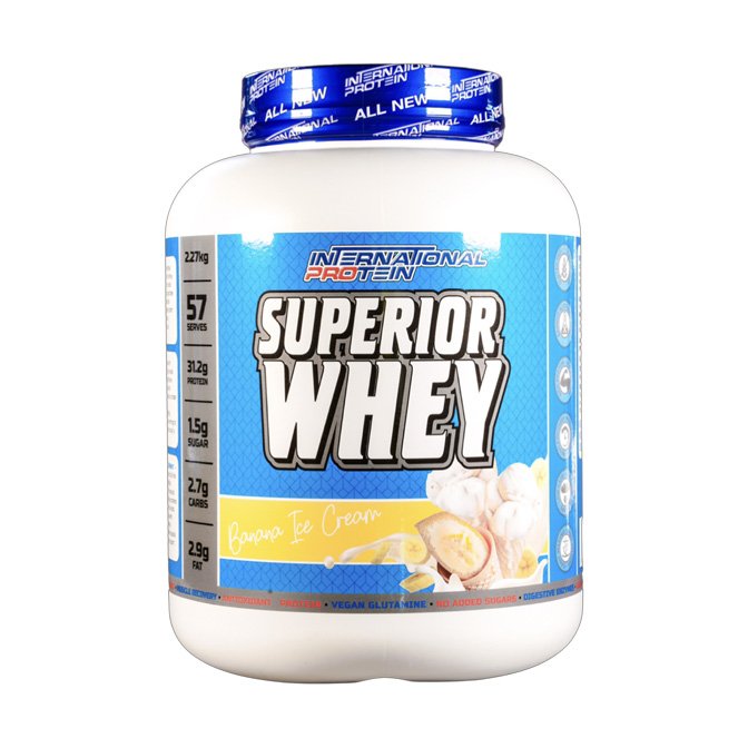 International Protein’s delicious Superior Whey is a high protein, low-fat supplement packed with Whey Protein Isolate, Whey Protein Concentrate and Whey Peptides formulated to support your muscle-building goals and facilitate recovery. Superior Whey blend is free of aspartame, fillers, stabilisers, vegetable gum and soy proteins.